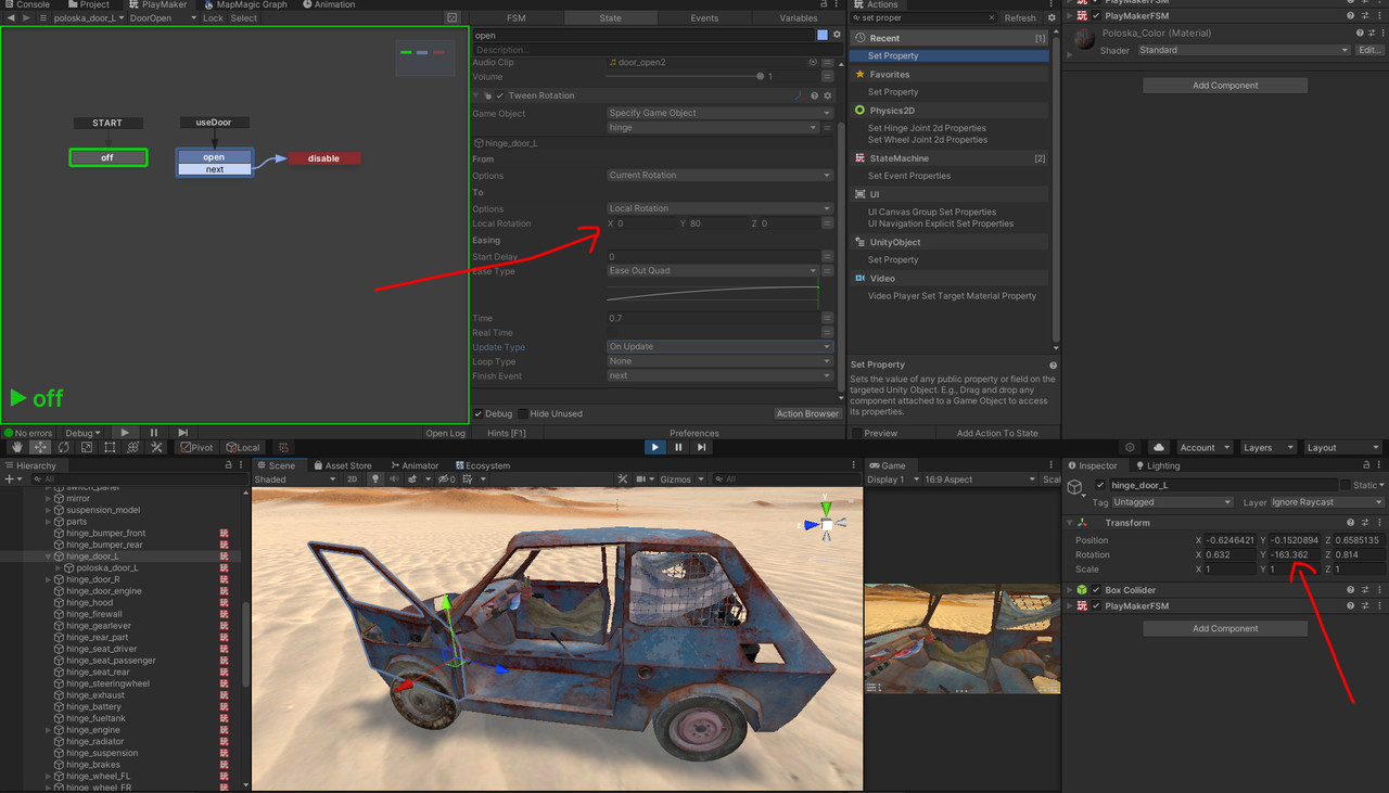 I'm trying to use Tween Rotate for a car door, it works when the car is in static position, but when the car start moving and player is opening/closing the door the Tween Rotate completely brakes and it seems like it tries to rotate the door object on world position.