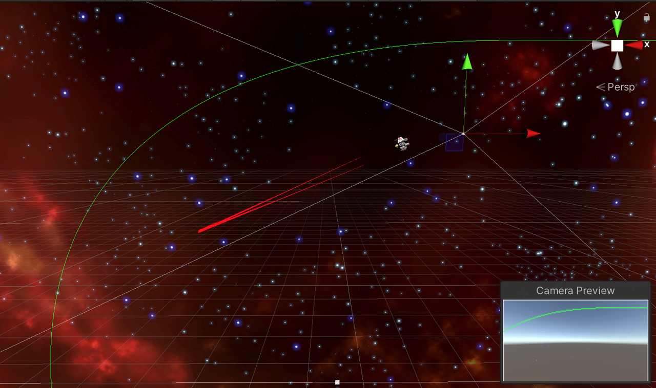 6. And back in the Game window, is the result of changing the FSM draw line Layer to Gameplay... you can see the lasers.
