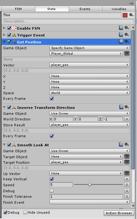 I'm really dumb and can't figure out how to Invert the direction of the "Smooth Look At" action. xD I tried Invers Transform Direction but it doesn't really work, or at least I don't know hot to use it. I basically want to make the npc look at the other direction, facing away from the player.